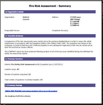 Upon completion of the project, the summary report is generated, which highlights issues experienced as a result of the fire safety risk assessments that can be used by the client to plan the works required to address issues across the property portfolio.